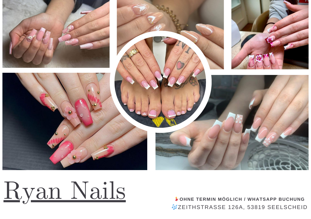 Besuchen Sie Ryan Nails in Neunkirchen-Seelscheid, Zeithstraße 126A, und überzeugen Sie sich selbst von unserer Qualität, unserem Stil und unserem Service. Wir freuen uns darauf, Sie bald bei uns begrüßen zu dürfen und Ihre Schönheit zum Strahlen zu bringen.